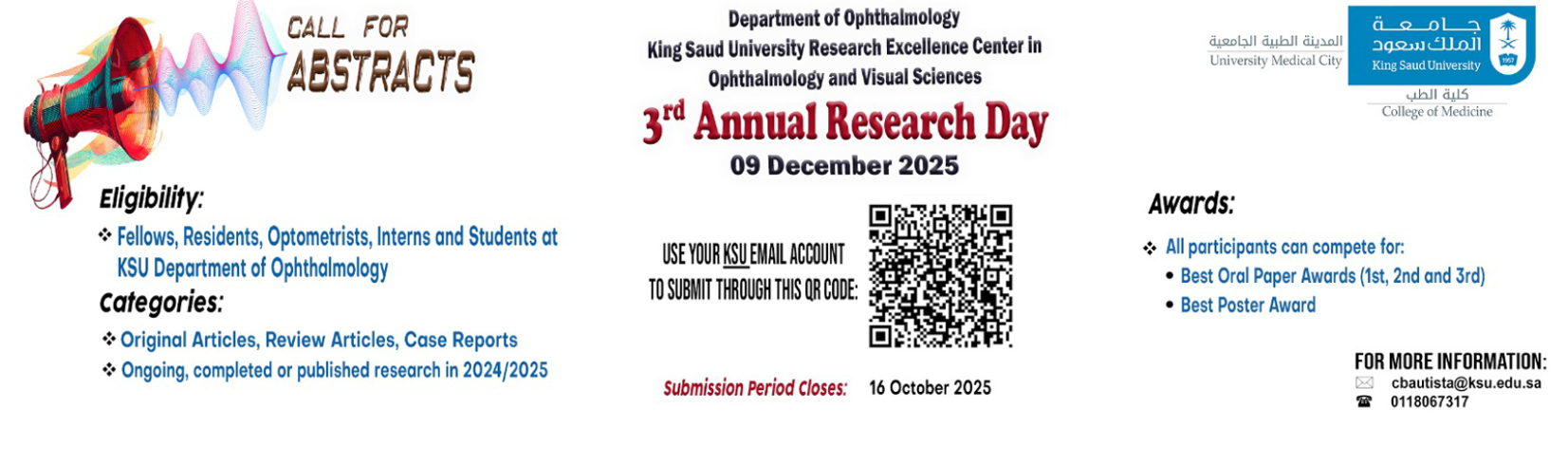 •الريادة في البحث العلمي ونشر المعرفة المؤثرة عالميًا في مجال أمراض العيون.