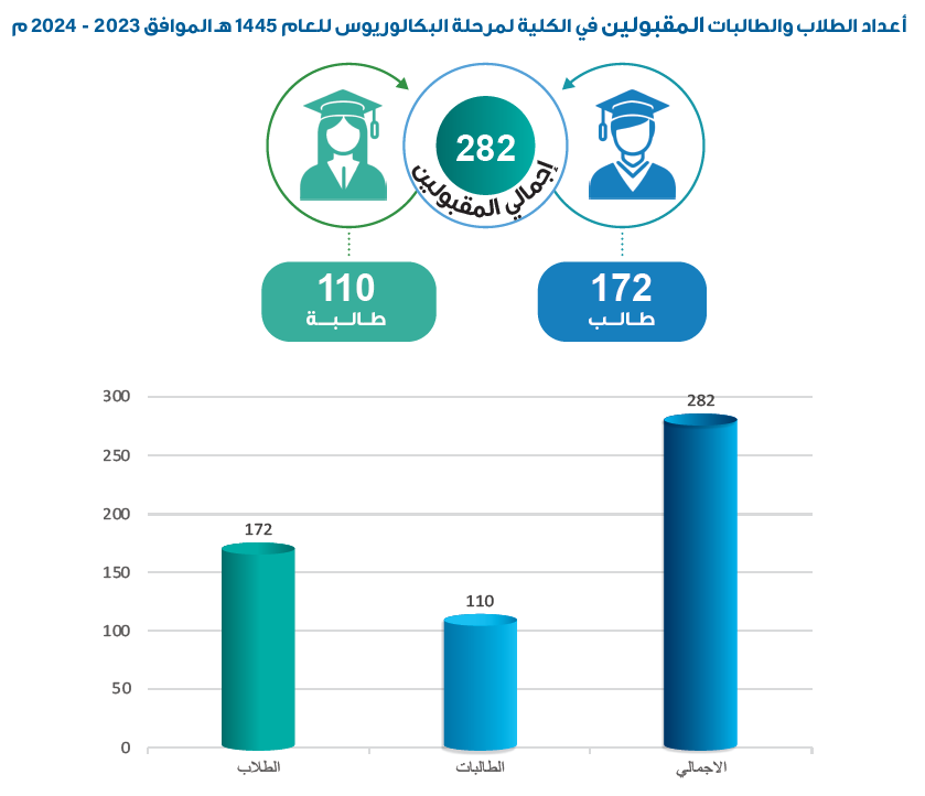 أعداد الطلاب والطالبات المقبولين في الكلية