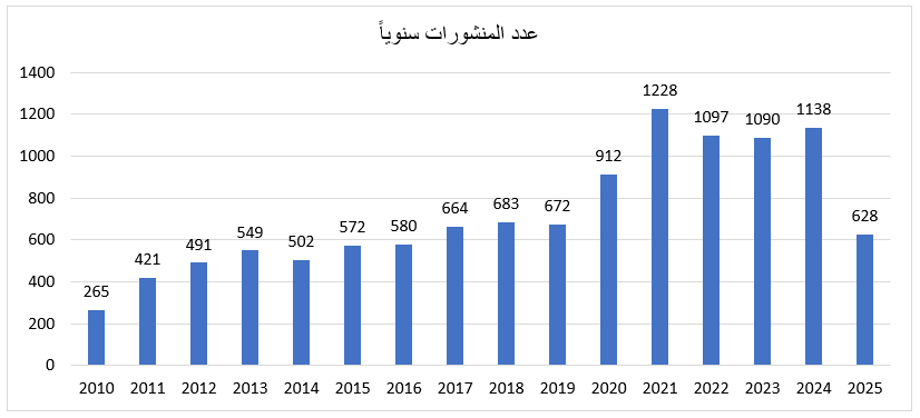 نسبة المنشورات في أرباع مختلفة من المجلات في 2025: